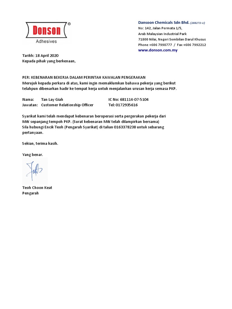 Malaysia Mco Letter To Work Sample